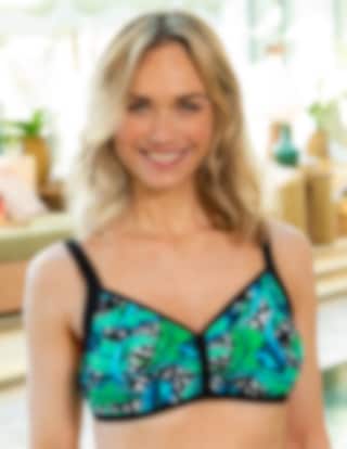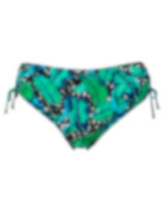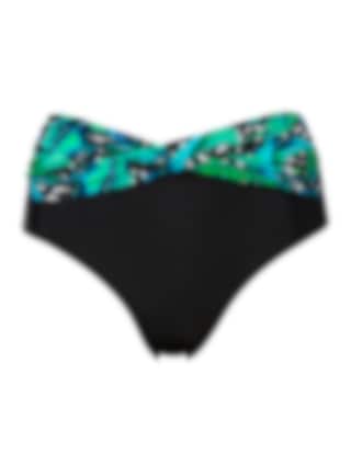 Smickrande bikinitrosa med hög midja och formande C-cut-snitt. Elegant korsad detalj framtill med tropiskt mönster som framhäver midjan. Bekvämt och stilrent val för både strand och pool.